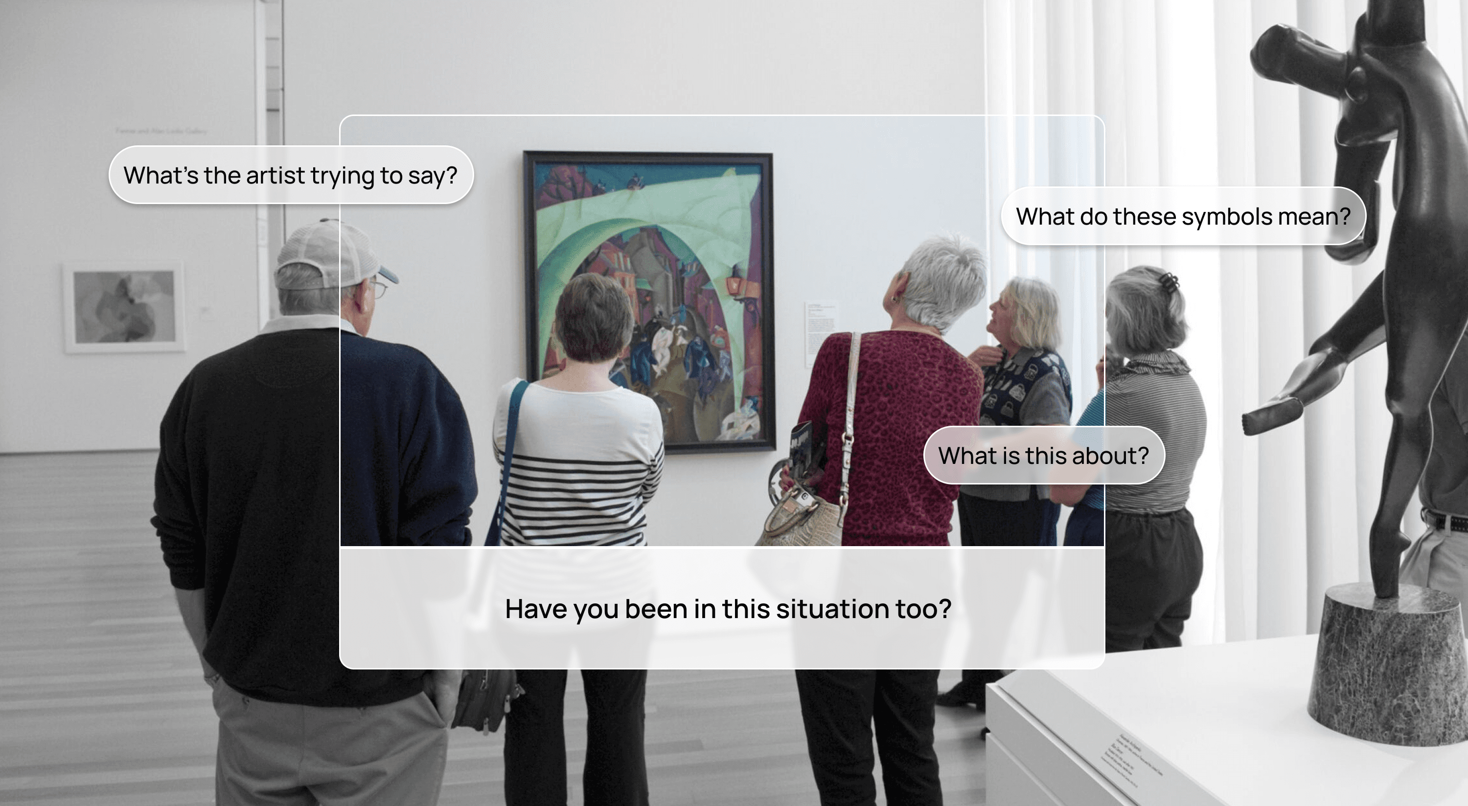 How might we transform art from a silent, intimidating experience into an accessible, conversational journey that creates meaningful connections between artists and audiences